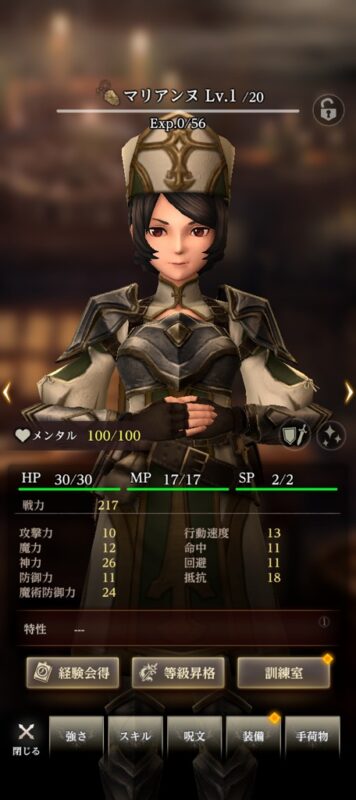 マリアンヌ【聖・僧侶】の継承スキル、克己で上がるパラメータ