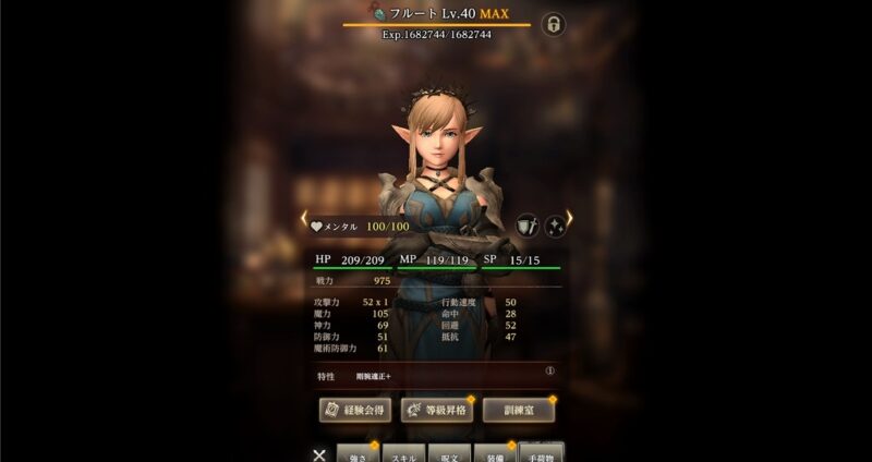 例えば伝説の冒険者、シェリリーニャの初期ステータスは次の通りです。